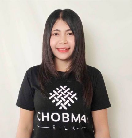 "ปิ่น ผู้ที่มุ่งมั่นและมีความตั้งใจทำงานในองค์กรของเรา ความผูกพันของเธอกับผ้าไหมเริ่มต้นตั้งแต่เด็ก เมื่อได้อาศัยอยู่กับย่าและเห็นกระบวนการปลูกหม่อน เลี้ยงไหม จนกระทั่งตัวไหมเติบโตและสร้างรังไหมสีเหลือง ปิ่นได้เรียนรู้การสกัดเส้นไหม ย้อม และทอออกมาเป็นผ้าไหมที่สวยงาม ทุกขั้นตอนเต็มไปด้วยความทุ่มเทและความตั้งใจ เพราะเธอรู้ว่ามันยากมากกว่าจะผลิตผ้าไหมแต่ละผืนได้"