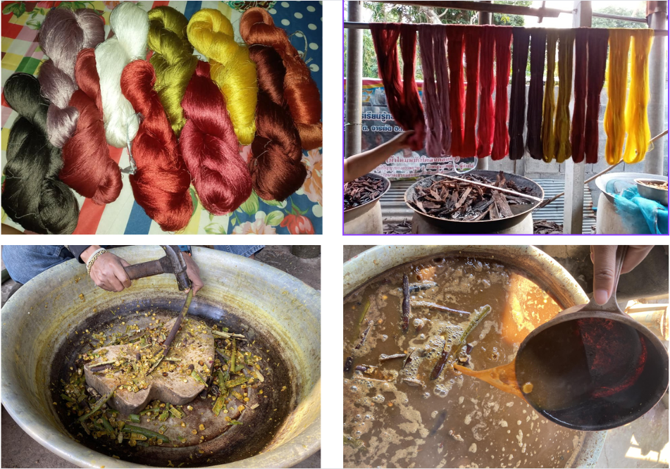 การย้อมสีเส้นไหมเป็นขั้นตอนที่ทำให้ผ้ามีสีสันสดใสและสวยงาม เทคนิคการย้อมสีแบบดั้งเดิมใช้สีจากธรรมชาติ เช่น เปลือกไม้และสมุนไพร ซึ่งทำให้สีของผ้ามีความเป็นเอกลักษณ์