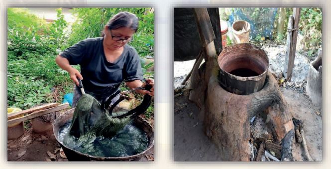 การทอผ้าหมี่ขิดของบ้านศรีชมชื่นใช้เทคนิคการทอแบบขิด โดยใช้เส้นไหมที่ย้อมด้วยสีจากธรรมชาติ เช่น เปลือกไม้ ใบไม้ และผลไม้ป่า เช่น สีน้ำตาลจากเปลือกประดู่ สีเหลืองจากดอกทองกวาว เป็นต้น ซึ่งขั้นตอนการย้อมนั้นยังคงใช้วิธีการแบบดั้งเดิมเพื่อรักษาความเป็นธรรมชาติของเส้นไหม