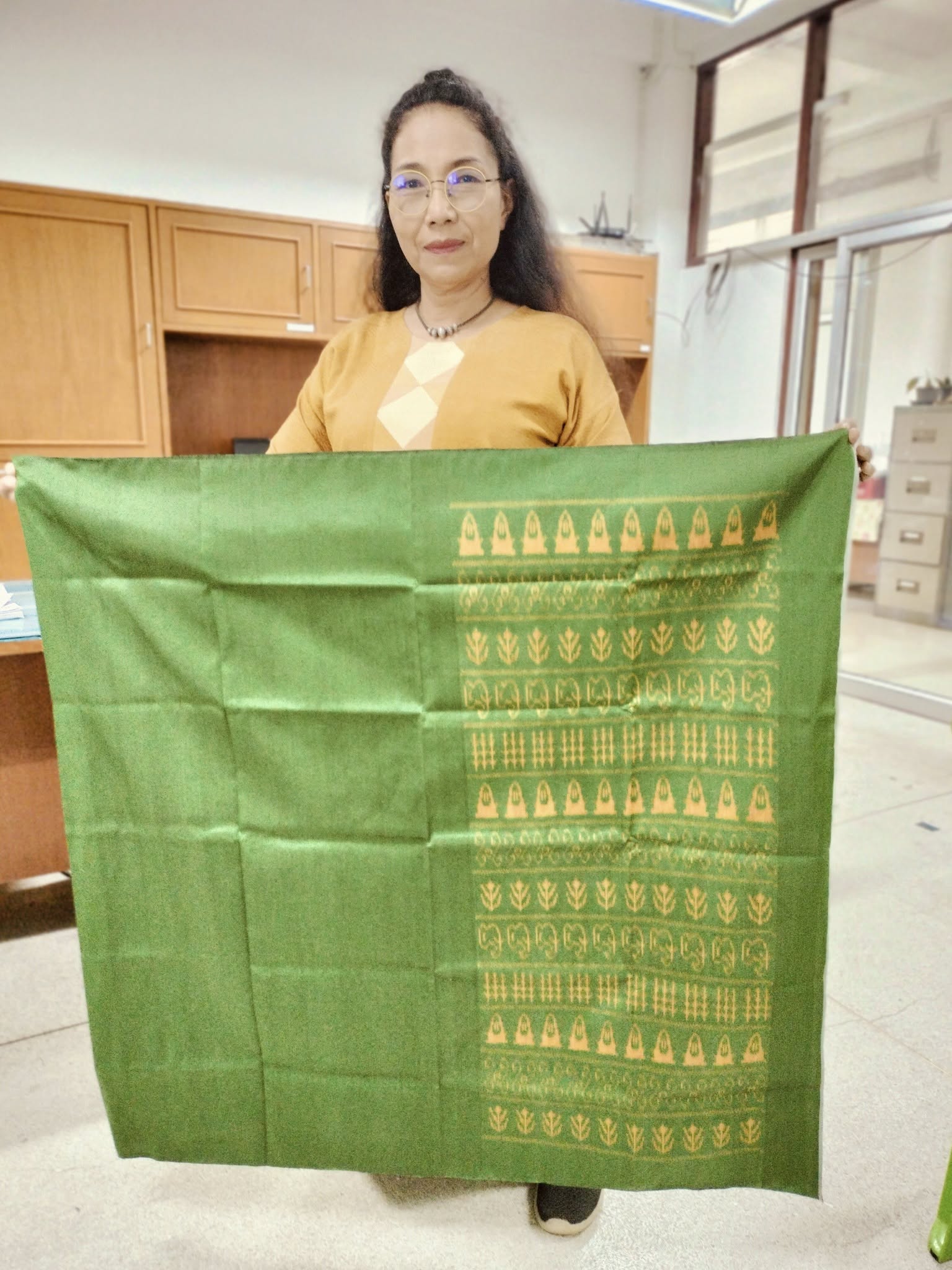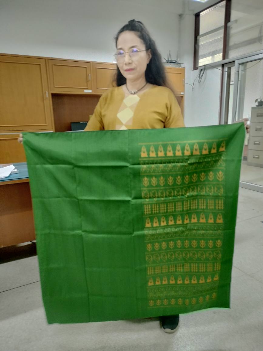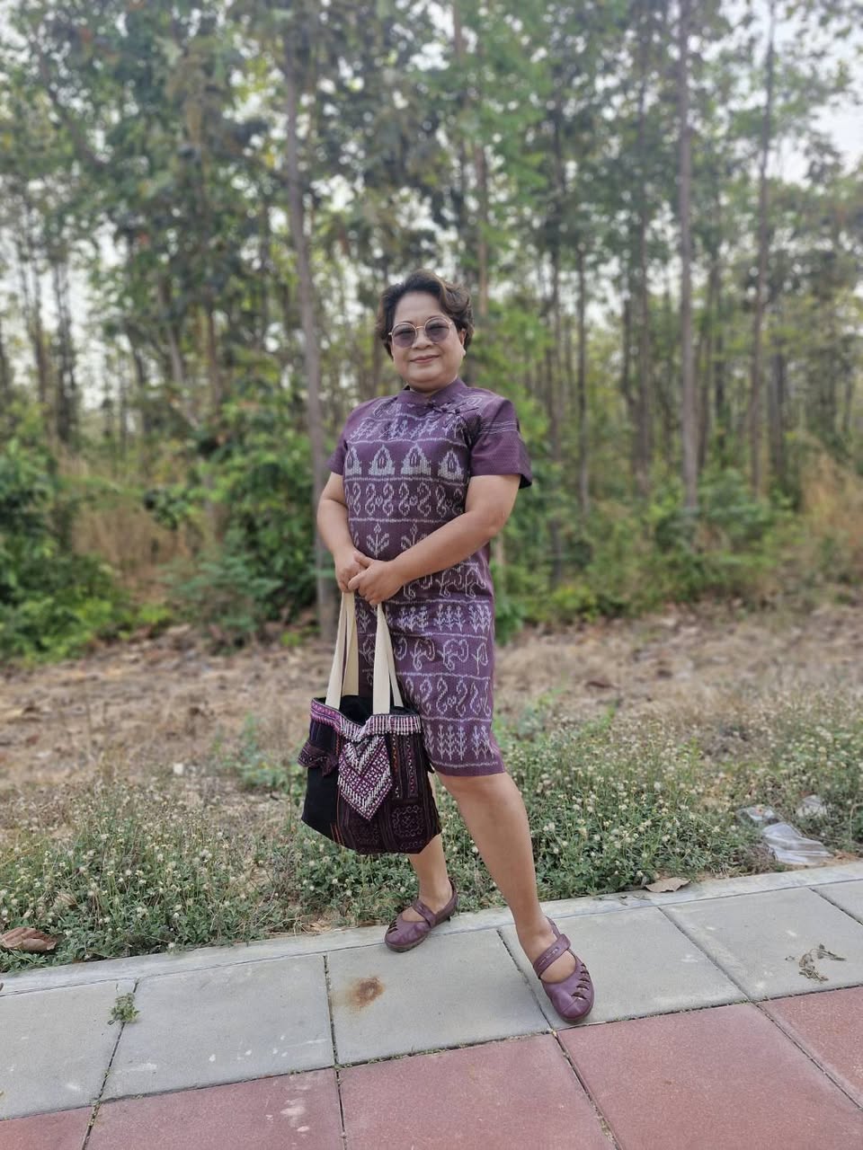 คุณแพลเฌอ จงประเสริฐ หัวหน้าพัฒนาชุมชน อำเภอเมืองสุรินทร์ ผู้ออกแบบลวดลาย