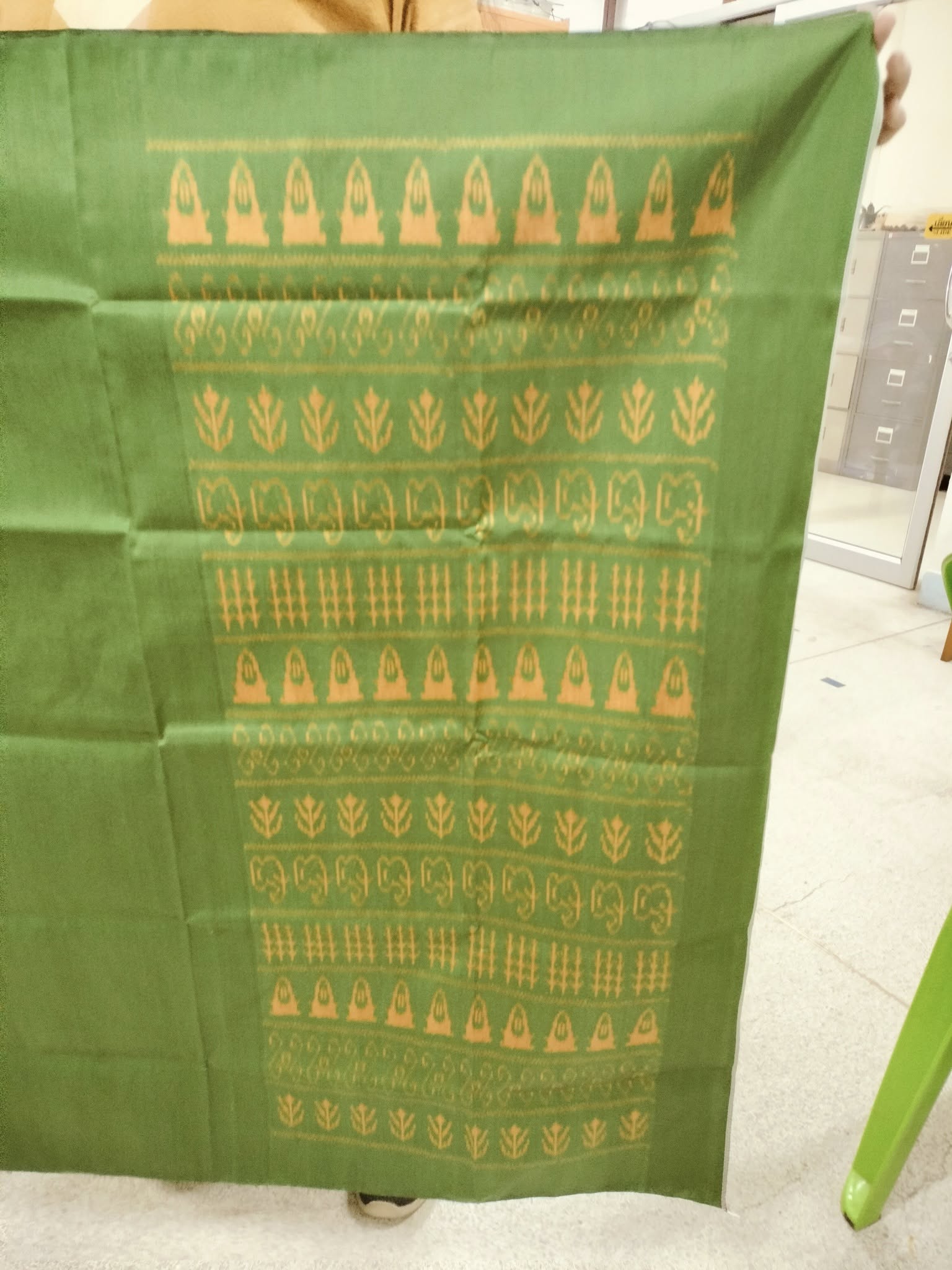 ภาพผ้าไหมมัดหมี่ลายคำขวัญประจำจังหวัดสุรินทร์