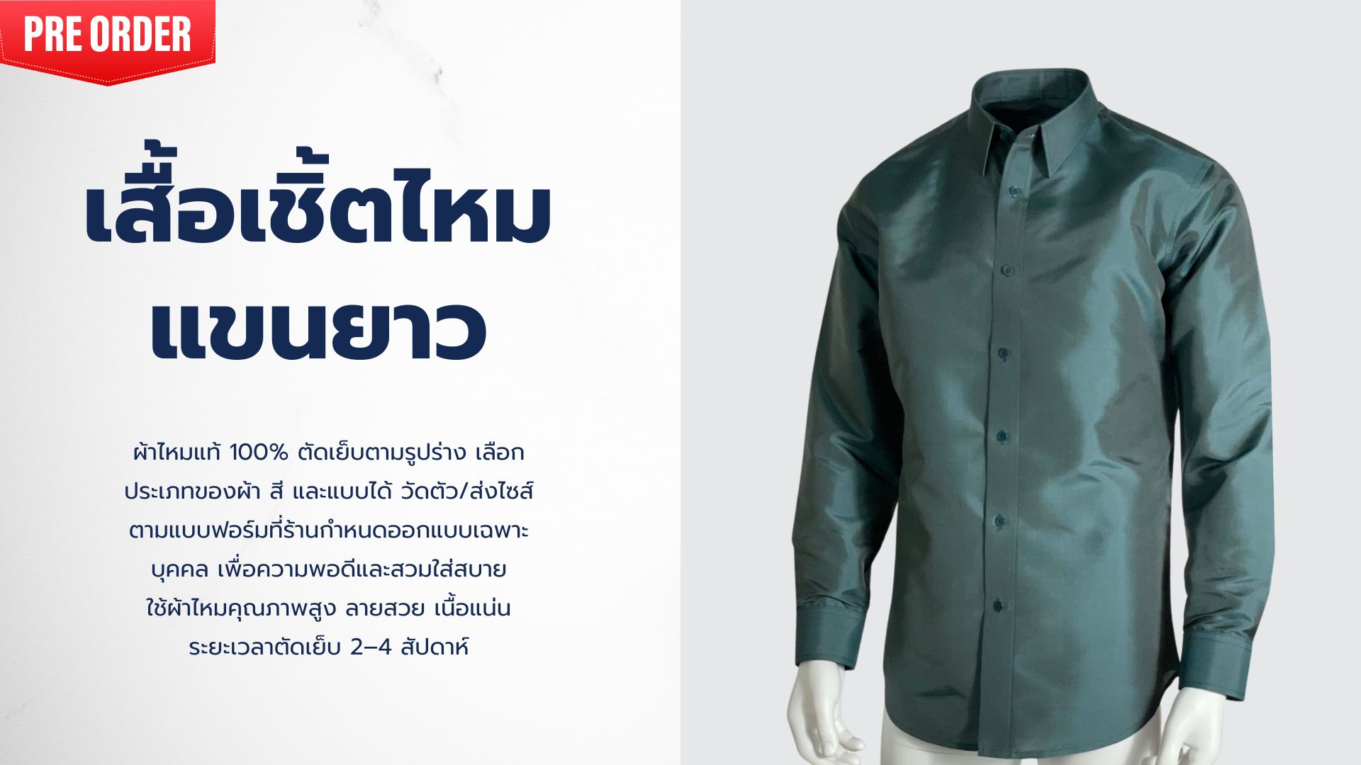 เสื้อเชิ้ตผ้าไหมแขนยาว ตัดเย็บ…