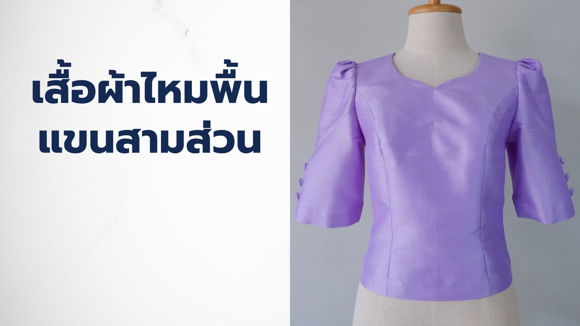 เสื้อผ้าไหมพื้น แขนสามส่วน