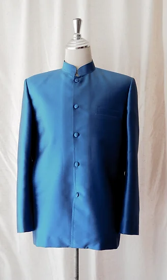 เสื้อสูทซาฟารี สูทคอจีน ทรงพระราชทาน ไหมแท้ สีน้ำเงิน รหัส DM-CT0301664