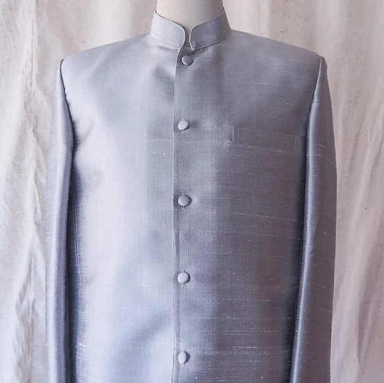 เสื้อสูทซาฟารี สูทคอจีน ทรงพระราชทาน ไหมแท้ สีเทาเงิน รหัส DM-CT0301666