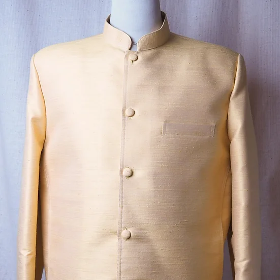 เสื้อสูทซาฟารี สูทคอจีน ทรงพระราชทาน ไหมแท้ สีเหลืองไข่ รหัส DM-CT03016613