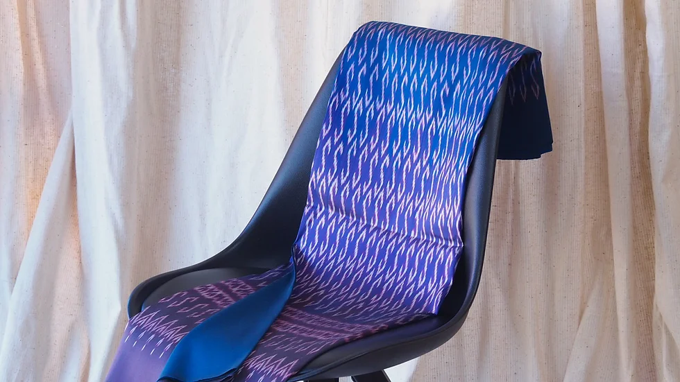 (ผ้าชุด)ไหมมัดหมี่ 3ตะกอ ไหมแท้ (ผ้าลาย 2หลา+สีพื้น2หลา) สีฟ้าม่วง รหัส M2B-CT-SKU102040