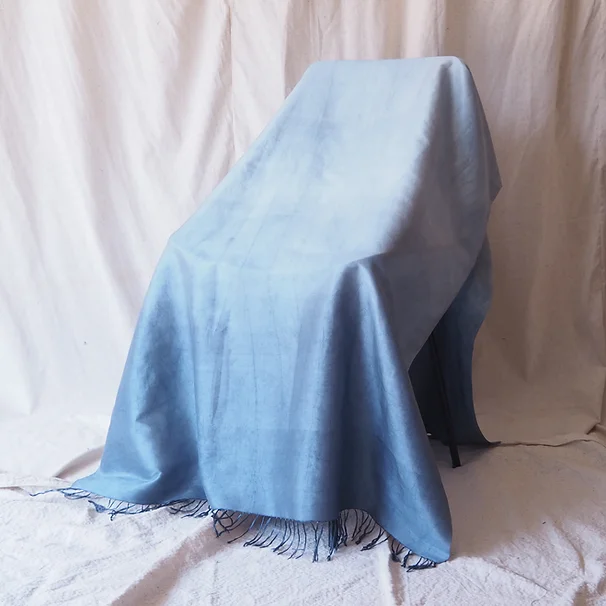 ผ้าคลุมไหล่ผ้าไหม ผืนใหญ่ มัดย้อม มีชายครุย ขนาด 100x200ซม. สีฟ้า รหัส ZYH-CT-102665
