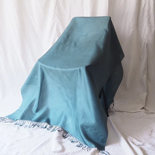 ผ้าคลุมไหล่ผ้าไหม ผืนใหญ่ มีชายครุย ขนาด 100x200ซม. สีเขียวอมฟ้า รหัส ZYH-CT-102781